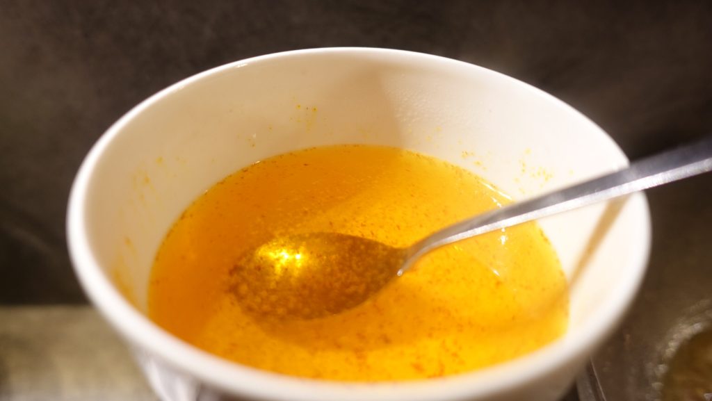 Lösen Sie das Safran-Tütchen in einer Tasse heißem Wasser auf.