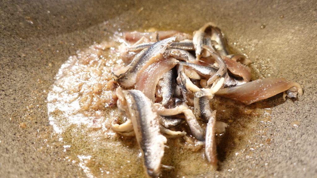 Zubereitung der Spaghetti mit Sardellen und wildem Fenchel