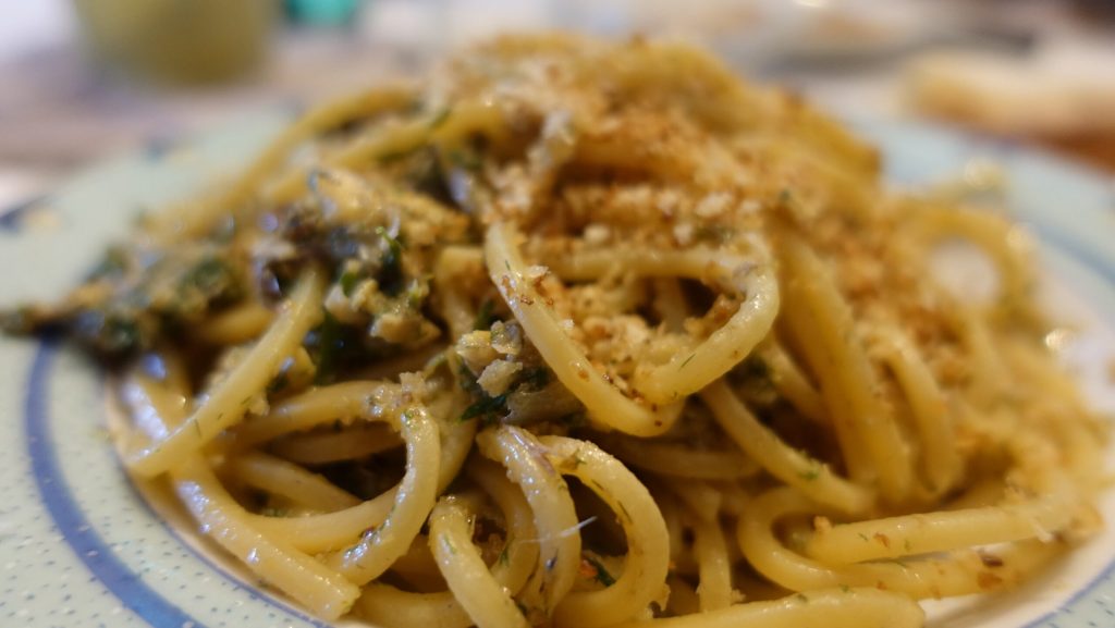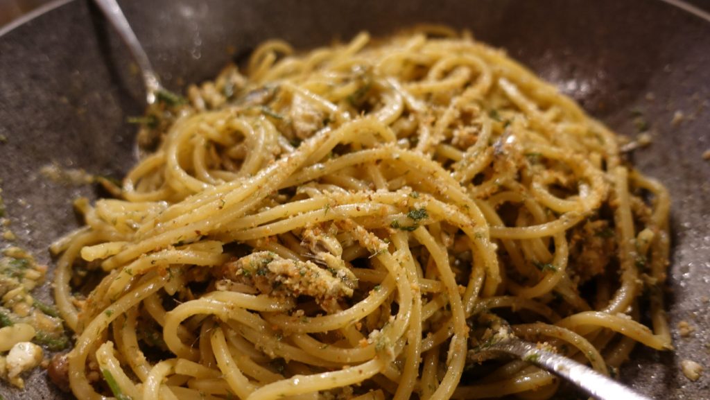 Spaghetti mit Sardellen und wildem Fenchel sind fertig!