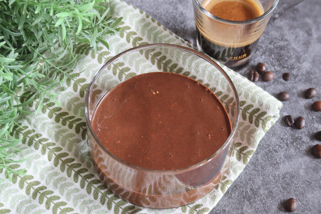 Bereite in der Zwischenzeit die Joghurtcreme zu, indem du den kalten Kaffee mit dem griechischen Joghurt vermischst