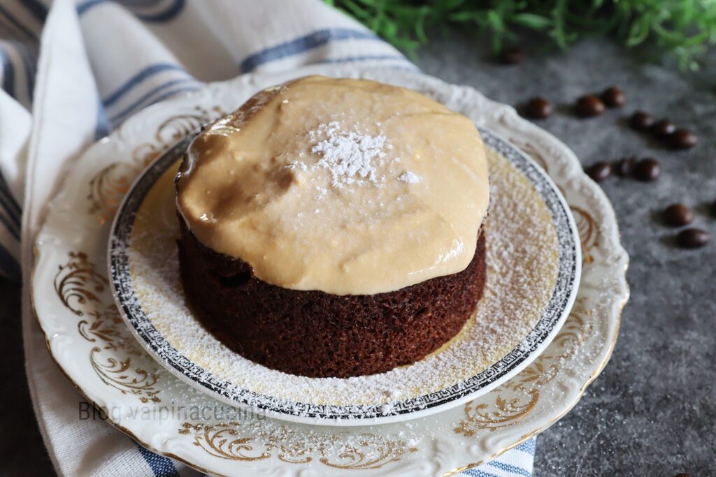 Gieße die Creme über den Tassenkuchen und genieße dein Frühstück.