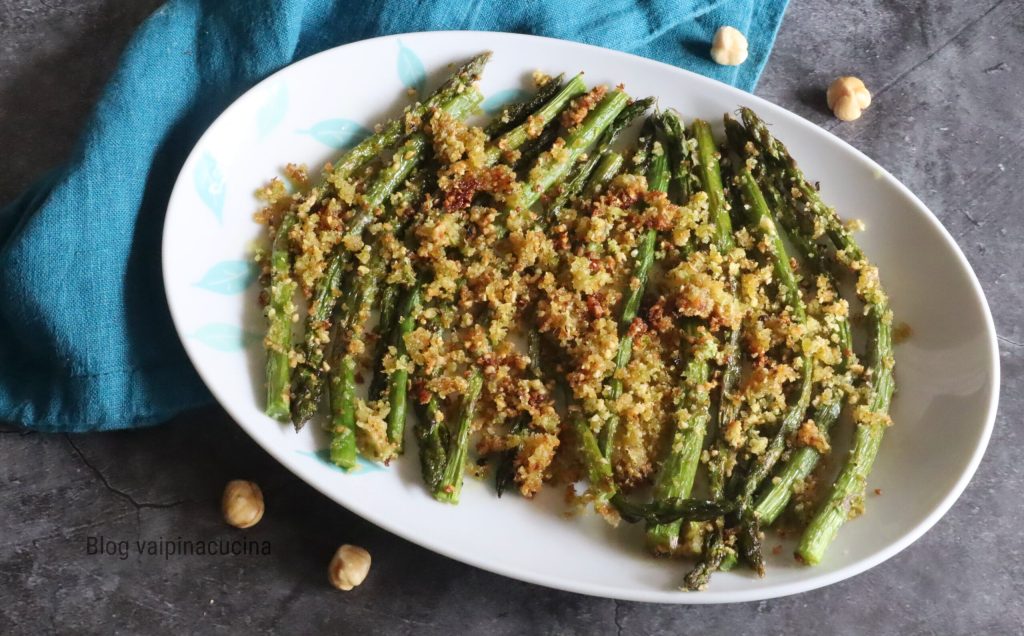 Überbackener Spargel mit Haselnüssen, frischen Semmelbröseln, Salz und Pfeffer oder wenig mehr. Interessant zu wissen ist, dass Spargel, neben dem wilden Vorkommen, von März bis Juni Saison hat. Sie gehören zur Familie der Spargelgewächse, sind mediterranen Ursprungs und stammen aus Kleinasien. Heute werden sie in Europa, Amerika, China und natürlich in Italien zu dieser Zeit angebaut. Es gibt viele Vorteile: Neben 20 Kalorien pro 100 Gramm reduzieren sie Wassereinlagerungen, die Feindinnen der Frauen, und damit Cellulite, dank des Asparagin-Inhalts. Kennen Sie schon die Spargelsorten? Die grünen, die oberirdisch wachsen, und die weißen, die im Dunkeln im Boden angebaut werden, um Chlorophyll zu vermeiden. Apropos Haselnüsse: Ich wusste nicht, dass es neben der Tonda Gentile delle Langhe aus dem Piemont auch hochwertige Sorten wie die Tonda di Giffoni in Kampanien gibt, ebenso wie in Latium und Sizilien, und nicht zu vergessen Kalabrien, Umbrien und Sardinien. Dank der in der Haselnuss enthaltenen Ölsäure senkt sie Cholesterin und beugt Herz-Kreislauf-Erkrankungen und nicht nur diesen vor. Da ich nicht selbst Arzt bin, sind dies Informationen, die ich von meinem Hausarzt, der auch Ernährungsberater ist, erhalte.
