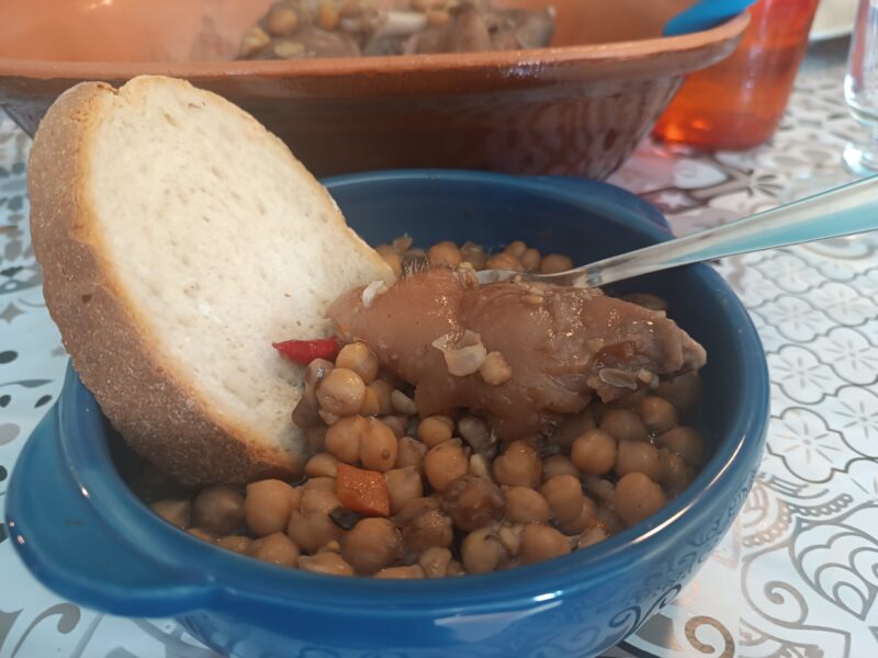 Ein reichhaltiges Wintergericht, das von November bis März zubereitet wird, als man den konservierten Ernteertrag und das auf dem Bauernhof gezüchtete Fleisch kochte, in diesem Fall mit den Schweinefüßen, einem der weniger edlen Teile.
