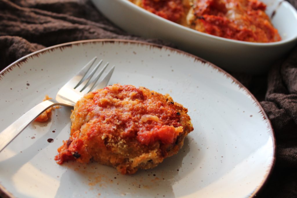 Die Panierung, die das Paar abschließt, und die Tomatensauce vervollständigen den vollen Sommergeschmack und die Köstlichkeit.