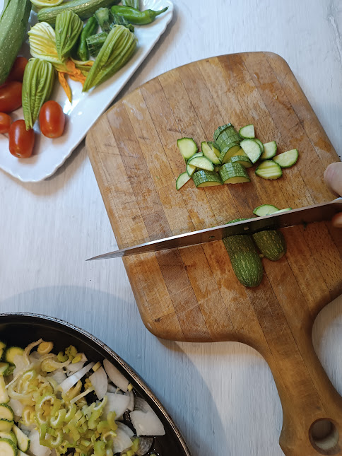 In diesem Fall handelt es sich um ein altes Rezept, das ich mit Paprika zubereite, aber mit ein paar Variationen; es ist köstlich auch mit Zucchini, vor allem wenn sie zart und frisch geerntet sind!