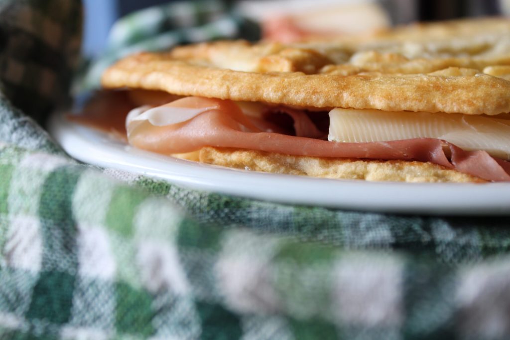 Rustikale Pfannkuchen, einfach zuzubereiten, knusprig und lecker. Sie werden heiß serviert, begleitet von typischen Wurstwaren und Käse aus der Region. Mit „pistà a gras“, einer Gewürzmischung aus Schmalz, aromatisiert mit Petersilie und Knoblauch.