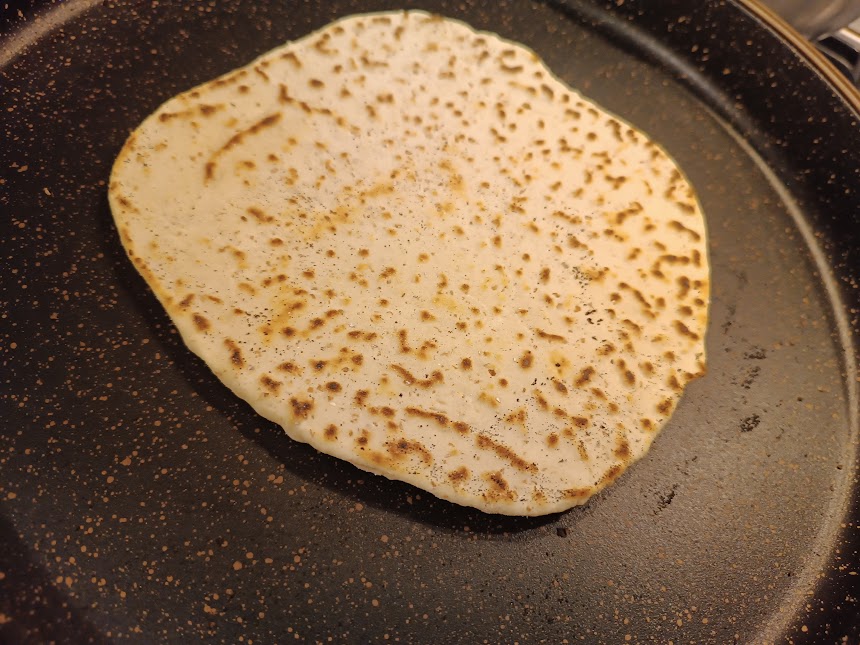 Es wird eine Schüssel zum Kneten benötigt, ein Teigrolle und eine Antihaft-Pfanne…
