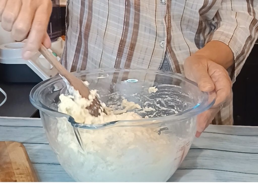 Nachdem Sie die Kartoffeln mit Schale gekocht haben, pürieren und in die Schüssel geben, das Mehl hinzufügen und mischen; die Hefe in etwas warmem Wasser auflösen und in den Teig geben, nach und nach warmes Wasser hinzufügen und gut mischen, schließlich salzen; der Teig sollte weich sein, noch einmal umrühren und etwa zehn Minuten ruhen lassen. Nehmen Sie Ihren Teig, der bereits sein Aussehen verändert hat, kneten Sie ihn etwa fünf Minuten lang gut durch und er wird eine samtige Konsistenz annehmen;