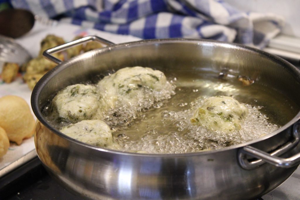 Eine Schüssel für den Teig, eine Pfanne zum Frittieren, Spritzbeutel zum Portionieren der Frittole oder alternativ zwei Löffel. Küchenpapier für Frittiertes, ein Topf für den Borretsch, ein Küchenhäcksler. Die Werkzeuge, die ich benutze, findet ihr in meinen Kaufempfehlungen.
