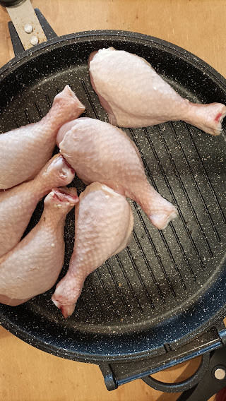 Bereiten Sie die Hähnchenschenkel vor und legen Sie sie in die gefettete Pfanne. Schneiden Sie das Gemüse in Stücke und fügen Sie es mit allen anderen Zutaten zum Hähnchen hinzu. Lassen Sie alles 90 Minuten bei niedriger Hitze gut abgedeckt köcheln. Falls nötig, Gemüsebrühe oder lauwarmes Wasser hinzugeben. Das langsame Garen nutzt die Feuchtigkeit der Zutaten, die nicht verdampft, da der Deckel geschlossen ist. Nach dem Garen anrichten und mit Balsamico-Essig-Sauce servieren. Ich habe frische Pflaumen verwendet, sie können durch getrocknete Pflaumen ersetzt werden.