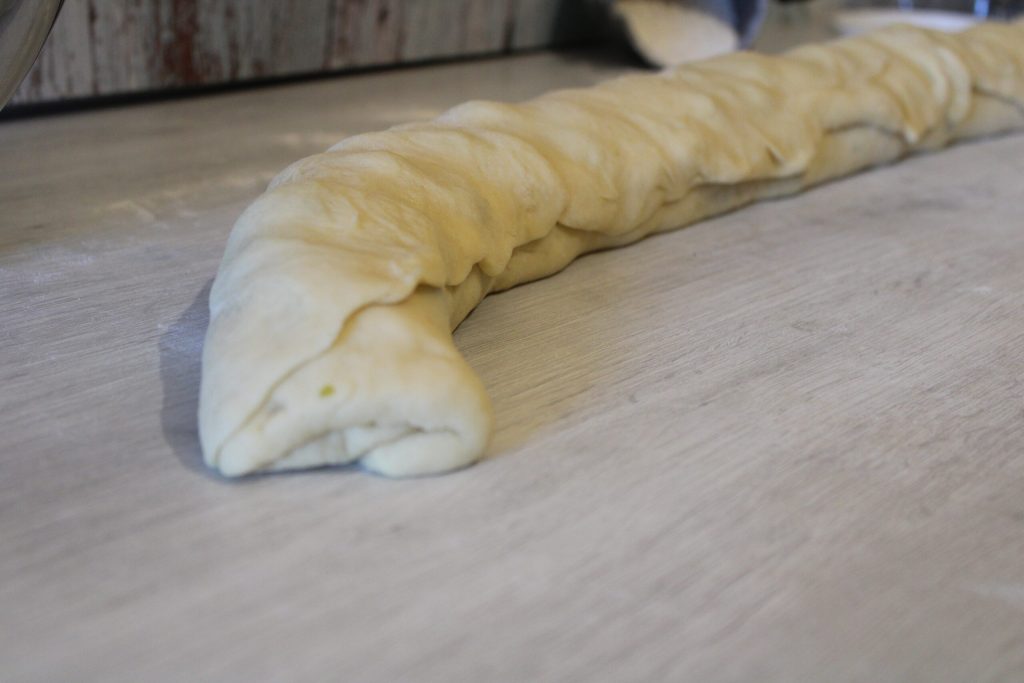 • Den Teig aufrollen und in zwölf Scheiben schneiden.