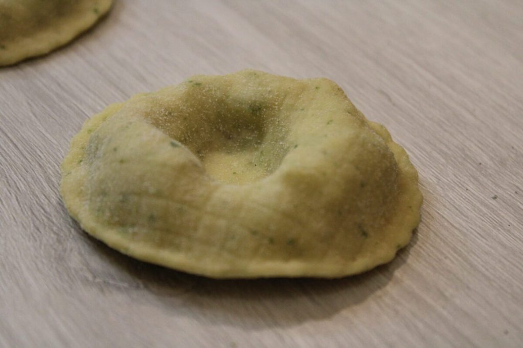 • Kneten Sie die Eier mit dem Mehl und einem Esslöffel Petersilie, rollen Sie den Teig aus und formen Sie Ihre Ravioli. Ich bedaure, dass ich kein Foto habe, aber ein technisches Problem hat alles verschwinden lassen. Beim Verteilen der Füllung formen Sie einen Donut, und wenn Sie den Ravioli schließen, versiegeln Sie den Mittelteil mit dem Daumen, die Vertiefung dient dazu, die Sauce aufzufangen.