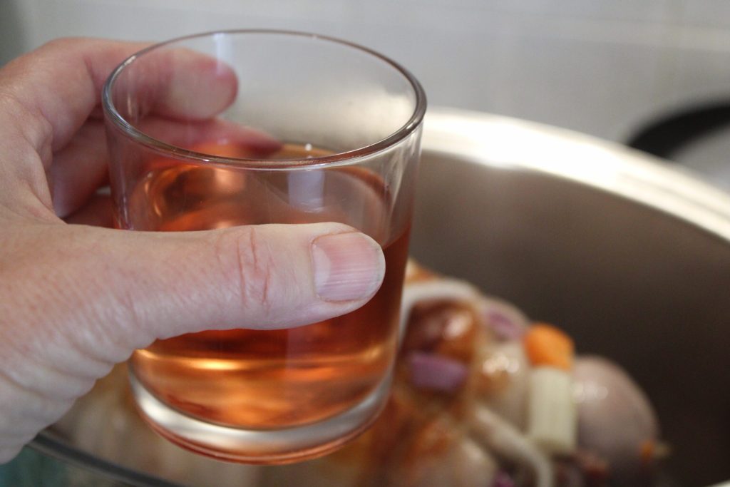 Das Glas Wein, ich bevorzuge Rosé, aber verwenden Sie, was Ihnen am besten gefällt. Ich empfehle einen nicht zu starken Wein, um die Aromen nicht zu überdecken.