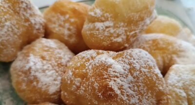 Ein Schleier aus Schnee, Puderzucker, und es scheint, als berühre man die Spitze des Himmels. Knusprig außen, innen ein Seufzer, sie drehen dir den Kopf mit einem Dreh. Iss sie warm, zwischen einem Lachen und einer Verbeugung, denn Karneval ist ein göttliches Spiel; und in diesem Bissen reiner Frische, tanzt das Kind in uns weiter.