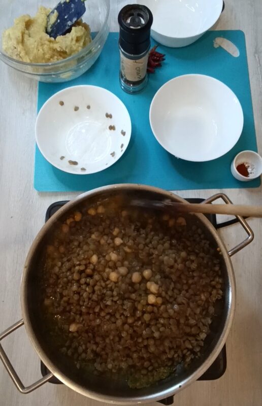 Die Kichererbsen wurden weggeräumt, die Kartoffeln schauen immer aus dem Korb heraus, die Linsen verweilen immer in der Speisekammer… Und heute kann ich die Kichererbsen aus Tradition mit einer zusätzlichen Ausrede kochen!