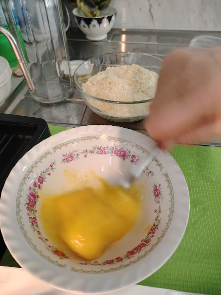 • In der Zwischenzeit alles für die Panade vorbereiten: die Eier schlagen und beginnen, Kugeln in der Größe von zwei Nüssen zu formen. Man kann auch einen Löffel verwenden, um die richtige Menge zu bekommen; in das Ei tauchen und dann in die Semmelbrösel.