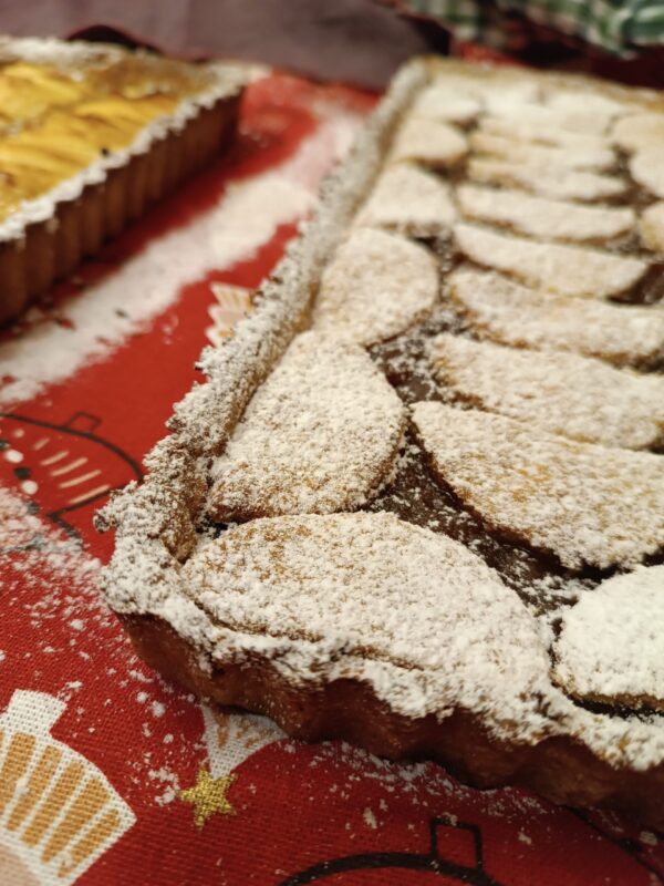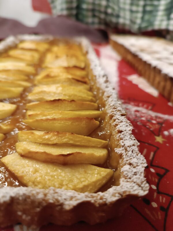 Und da ich schon eine Idee im Kopf hatte, habe ich sie umgesetzt… Ein leichter Mürbeteig mit Kokos… Pfirsichkonfitüre und Äpfel…