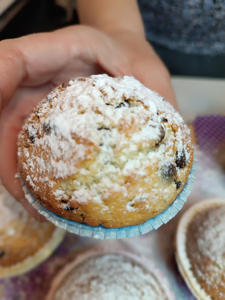 Sie wächst unordentlich und überall, also muss ich sie verwenden, verschenke viel davon, mache Sirup und Pralinen; die Muffins haben mir gefehlt.