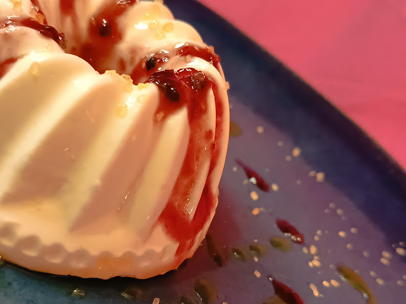 • Erkalten lassen und dann mindestens 6/8 Stunden im Kühlschrank aufbewahren. Vor dem Servieren aus der Form nehmen und nach Belieben dekorieren. Ich habe die Gelee aus wilden Brombeeren verwendet, die ich letzte Saison gemacht habe.