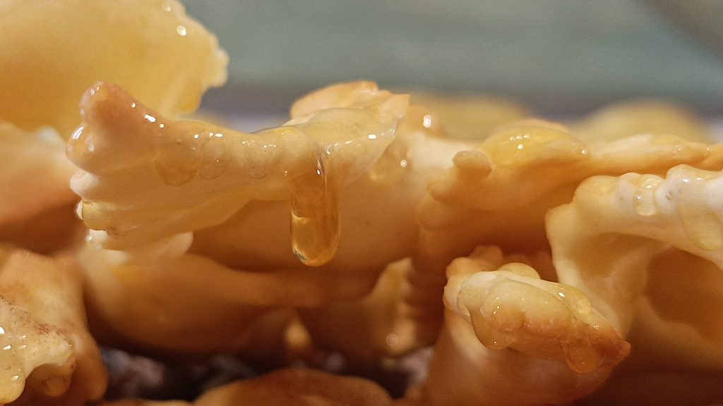 Mit Kastanienhonig beträufeln und mit einer Prise Zimt aromatisieren