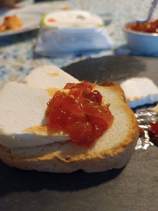 Letzter Kochvorgang, ich mache insgesamt 4, fügen Sie die Tropfen Senfessenz hinzu und rühren Sie gut um. Verteilen Sie es in Gläsern und drehen Sie sie für das Vakuum um bis zum nächsten Tag. Der erste Geschmack mit Robiola di Roccaverano Bricco delle Croce