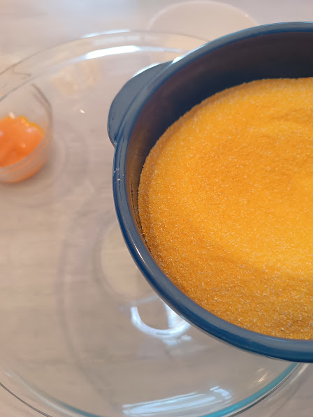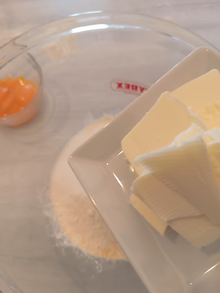 Auf die Arbeitsfläche geben und den Teig fertigstellen; nicht zu dünn ausrollen und in die gewünschten Formen schneiden, ich habe mich entschieden, einen Maiskolben zu machen