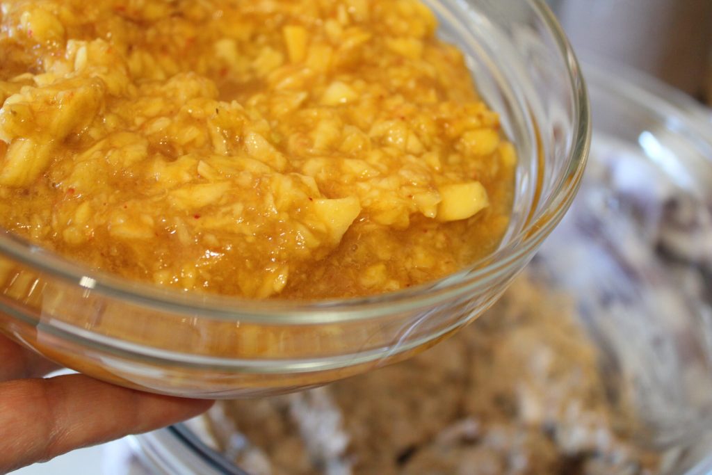 • Beginnen Sie damit, die Pfirsiche zu schälen, ich empfehle reife Pfirsiche, die dann in kleine Stücke geschnitten werden