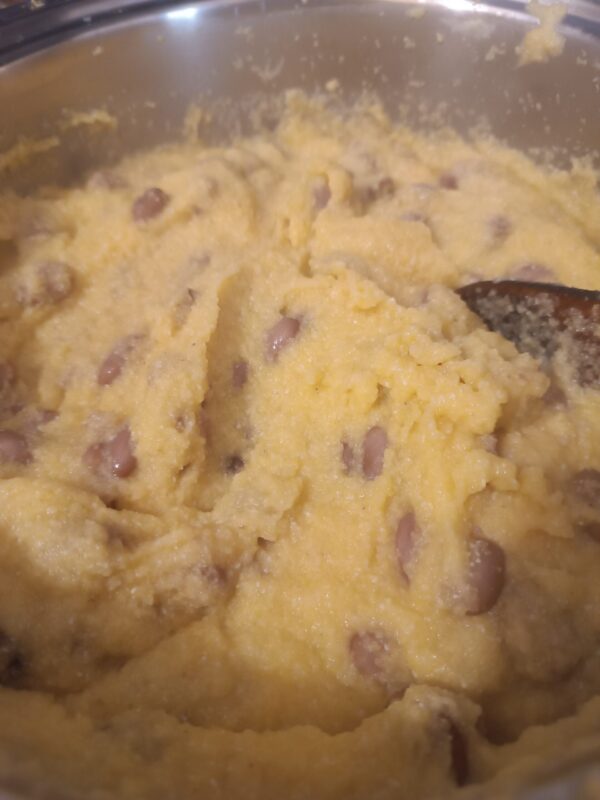 • Wenn die Bohnen gekocht sind, gießen Sie sie ab, wenn Sie möchten, werfen Sie die Brühe nicht weg, Sie können sie für eine Suppe verwenden, den Cotechino nach dem Entfernen der Haut zerbröckeln oder die Schwarte in kleine Stücke schneiden…Alles in die Polenta geben, zehn Minuten ziehen lassen und gut abkühlen lassen…Planen Sie, sie abends zu essen!