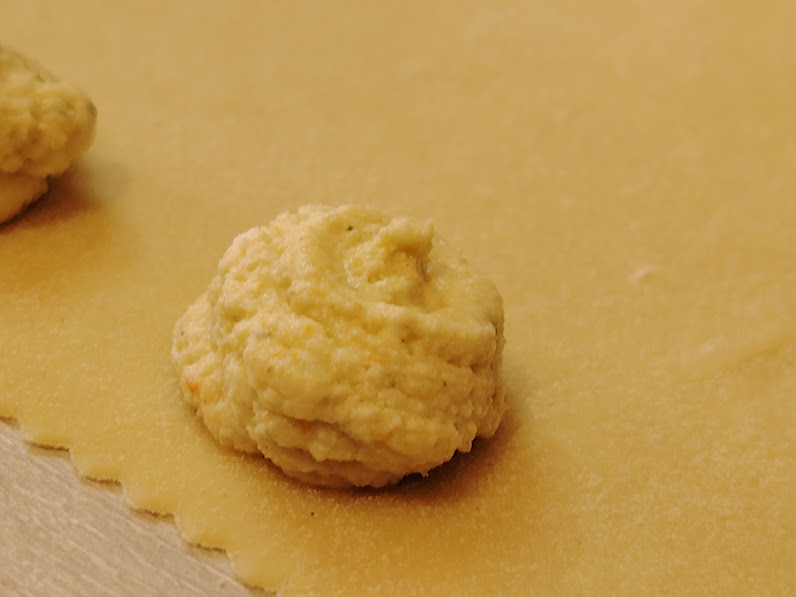 Sobald die Füllung fertig ist, beginnen Sie mit der Formgebung der Ravioli.