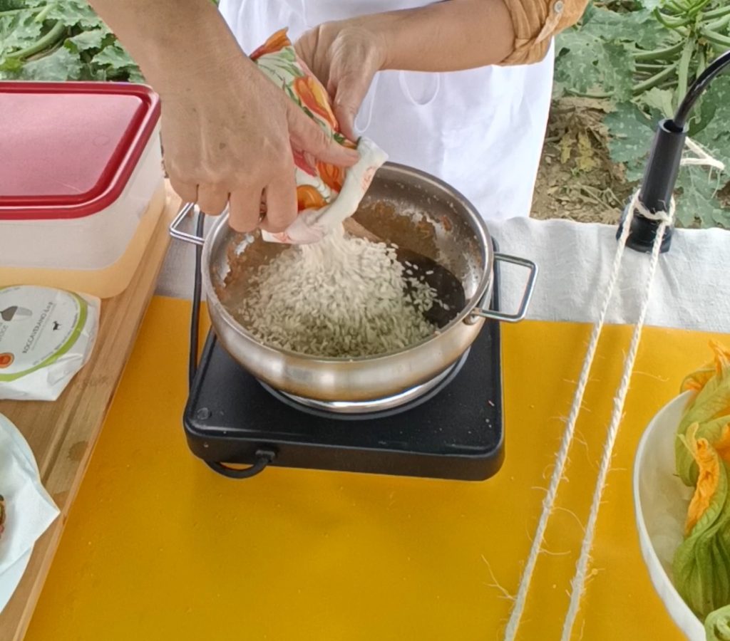 Bei dieser Gelegenheit habe ich die sobrich aus Gemüse zubereitet, wobei die Zucchini im Vordergrund standen, als Vorspeise und ein aromatisches Risotto, das mit der Roccaverano Dop…