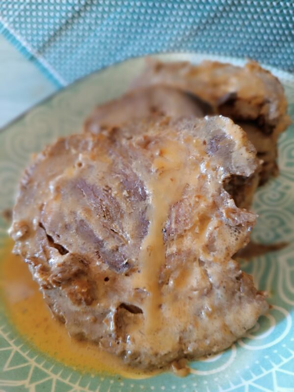 Er sollte warm serviert werden, mit seiner Soße, aber ich versichere Ihnen, dass er dünn geschnitten und kalt serviert, mit einem leichten Spritzer guten Balsamicoessigs… Jeder Tafel Ehre machen wird!