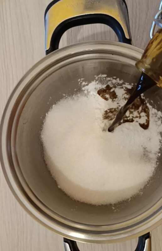 Ich habe Gelatine hinzugefügt, um die Konsistenz cremig, aber „stehend“ zu machen; für das Kaffee-Gelée habe ich Wasser, Zucker, Kaffee und Pulvergelatine verwendet