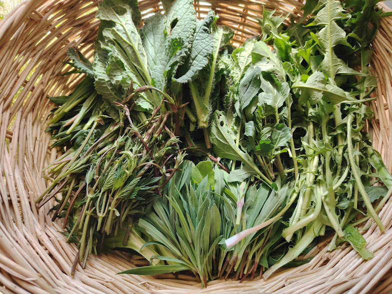 - 500 g Borretsch (Löwenzahn, Silene, Petersilienkerbel, Liverthine.)
