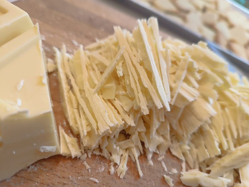 So habe ich beschlossen, mich in die Küche zu stellen und ein Rezept auszuprobieren, das mich von Anfang an begeistert hat: den Veilchenkuss. Ein Dessert, das die Zartheit des mit Vanille duftenden Mürbeteigs, die Cremigkeit von weißer Schokolade und Mascarpone mit einem erfrischenden Hauch Zitronenschale und die Anmut von mit Veilchen aromatisiertem Baiser vereint.
