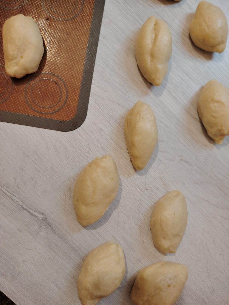 Formen Sie sie länglich wie auf dem Foto und lassen Sie sie bis zur Verdopplung aufgehen.