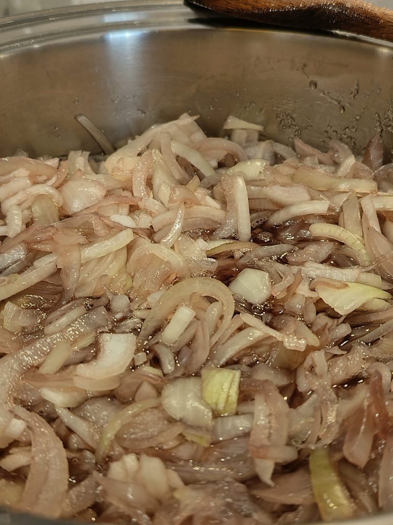 Zwiebelmostarda. Früher mochte ich keine Zwiebeln, jetzt glaube ich, dass ich nicht darauf verzichten könnte; ich gebe sie in viele Gerichte.
