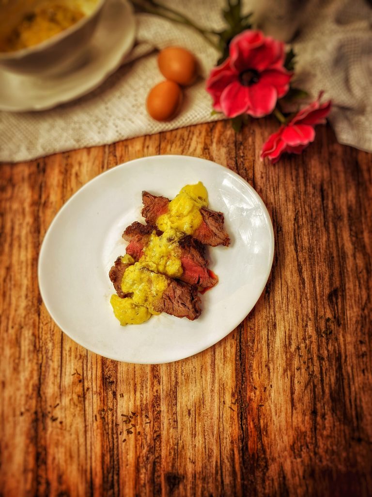 Schneiden und mit Béarner Sauce darüber oder separat servieren.