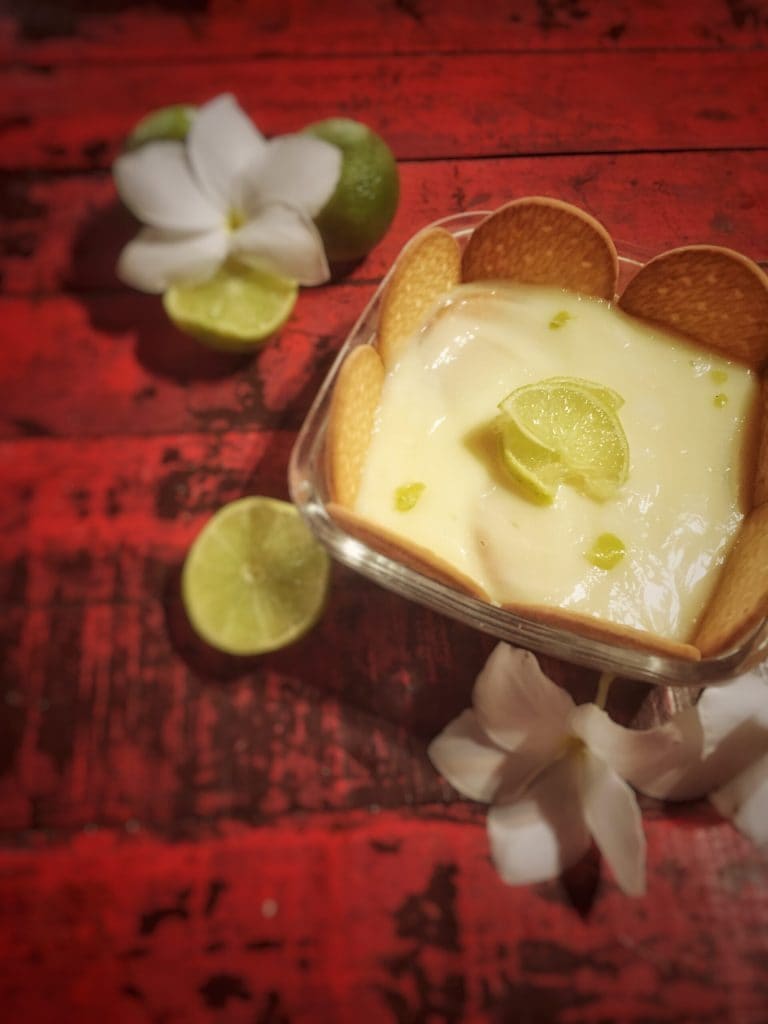 Sie wird üblicherweise in einem Glasbehälter präsentiert, in dem die Kekse mit einer Creme aus Kondensmilch, Kondensmilch und Zitronensaft abgewechselt werden.