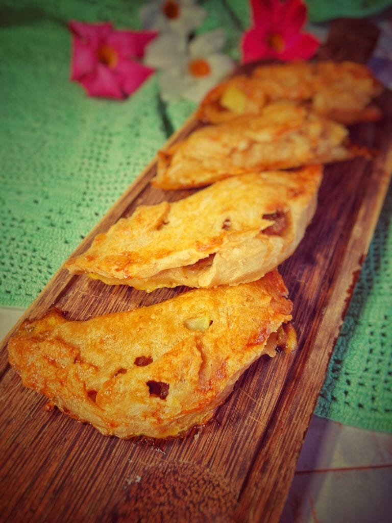 Man bereitet es zu, indem man eine Füllung aus Fleisch und Gemüse auf die eine Hälfte eines flachen Kreises aus Mürbeteig legt, den Teig zur Hälfte faltet, um die Füllung halbkreisförmig zu umschließen, und den gebogenen Rand vor dem Backen verschließt.