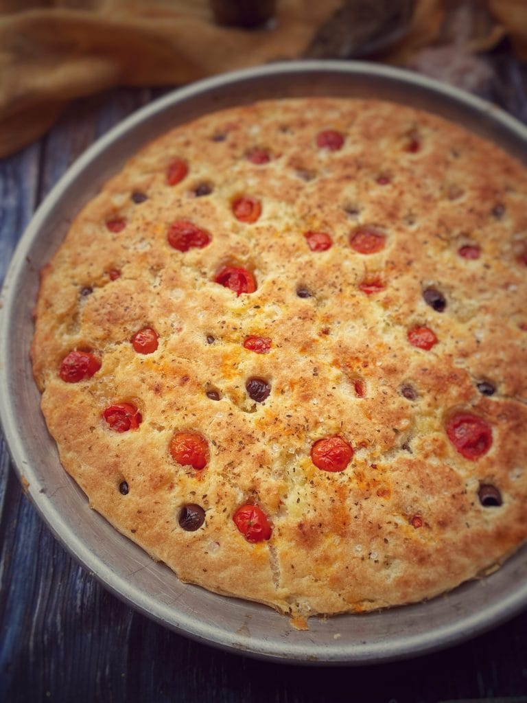 Traditionell wird sie mit einem Teig aus Wasser, Hefe, Mehl, Grieß und gekochten Kartoffeln hergestellt, die folgende Version wird jedoch mit einer Mischung aus glutenfreien Mehlen und frischem Sauerteig.