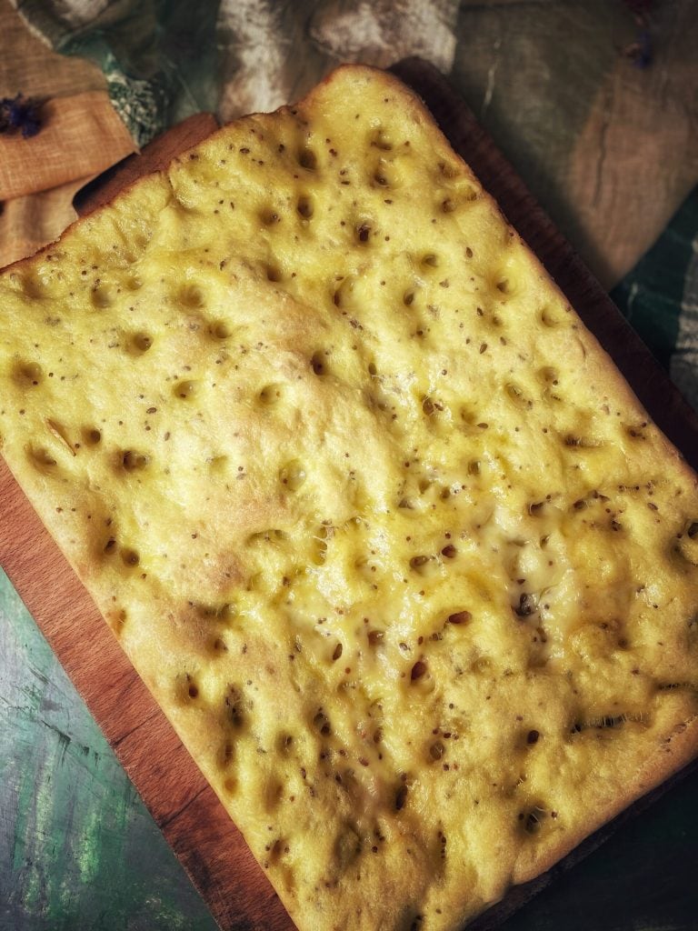 Das glutenfreie Focaccia mit frittierten Zucchiniblüten und mit glutenfreiem Sauerteig entstand aus meiner Erfahrung im glutenfreien Kochkurs (erinnert ihr euch? Der, bei dem ich auch das Reis-Pastiera gemacht habe).