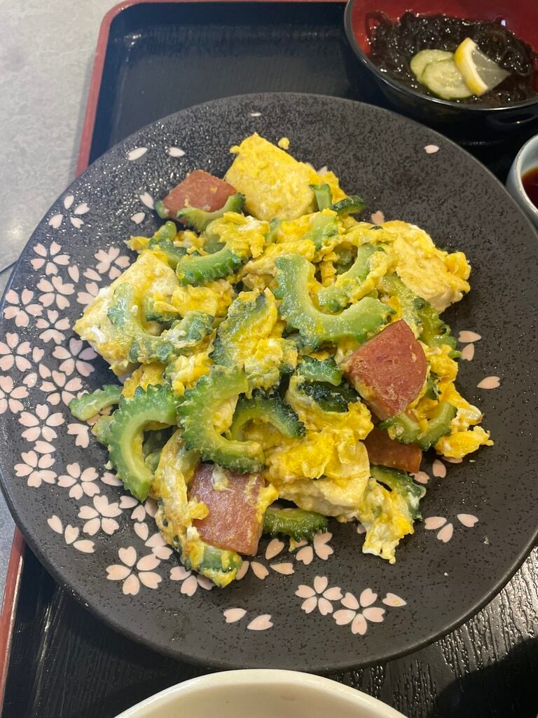 Der Goya Chanpuru (ゴーヤチャンプルー) ist ein traditionelles Gericht aus Okinawa, das den bitteren Geschmack von Goya (bittere Melone) mit anderen Zutaten wie Tofu, Eiern und Fleisch oder Fisch ausgleicht.