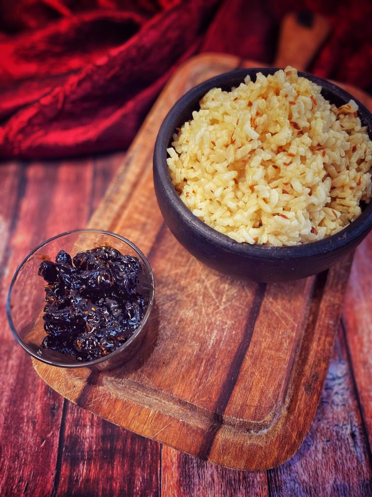 Der Jeera Reis, oder Jeera Bhaat, ist ein indisches Gericht, das aus Reis und Kreuzkümmelsamen besteht. „Jeera“ ist der Hindi-Begriff für Kreuzkümmelsamen, während das Wort Bhaat vom Sanskrit-Wort Bhakta abstammt, was „gekochter Reis“ bedeutet.