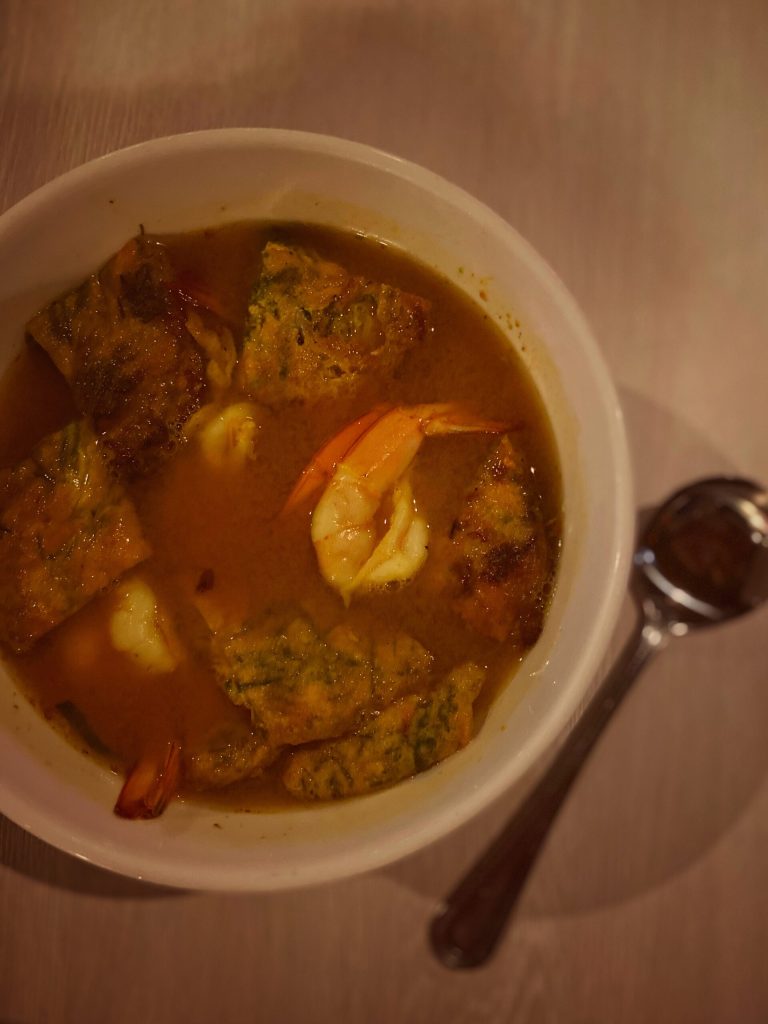 In Südthailand, wo ich das Gericht während meiner Reise nach Krabi im November 2024 probiert habe, wird es kaeng som genannt, aber im Rest Thailands kaeng lueang („gelbes Curry“) oder kaeng som phak tai, um es vom kaeng som Zentralthailands zu unterscheiden.