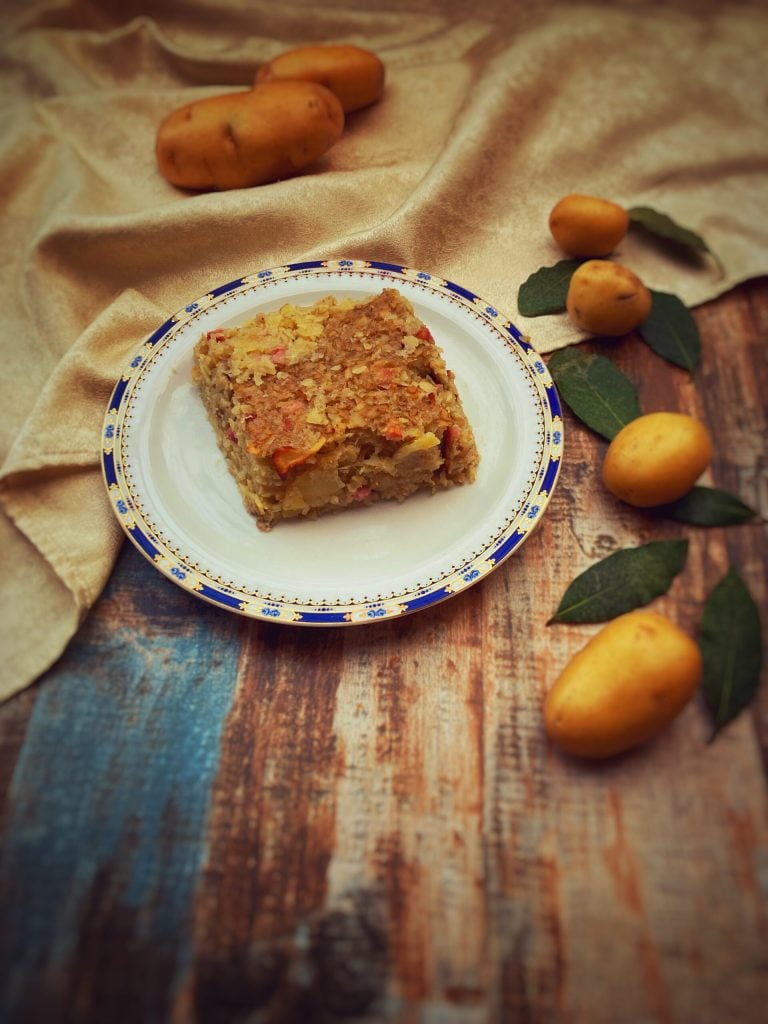 Kartoffeln, Speck, Milch, Zwiebeln und Eier gewürzt mit Salz und Pfeffer und verfeinert mit Lorbeerblättern und/oder Majoran, dann im Ofen gebacken.