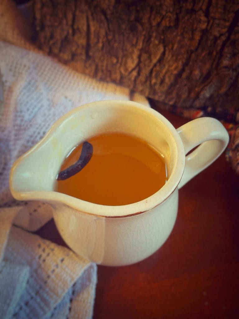 In einem Topf das Öl gießen, den langen Pfeffer und Wacholder hinzufügen und auf eine Temperatur von 55 °C bringen, entweder mit einem Roner oder durch Überwachung mit einem Küchenthermometer. Das Öl DARF NIEMALS kochen.