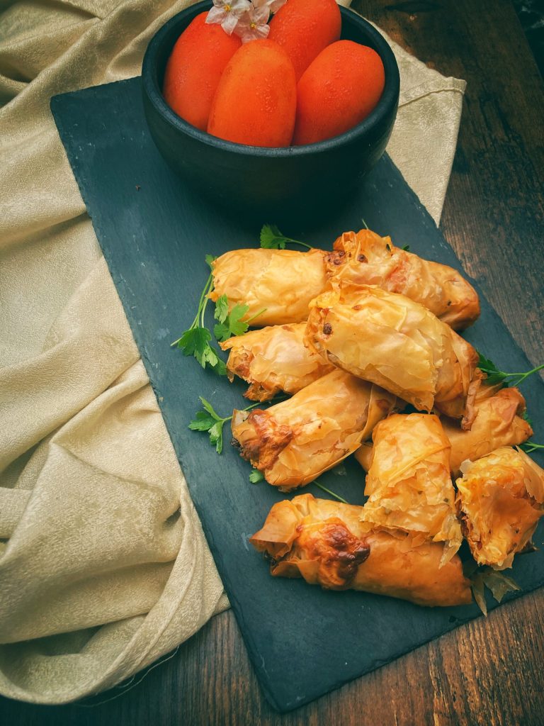 Die Paçanga Böreği sind Röllchen aus Filoteig (börek*), genannt Yufka, gefüllt mit Kasar-Käse, Pastirma, Tomaten und/oder Paprika.