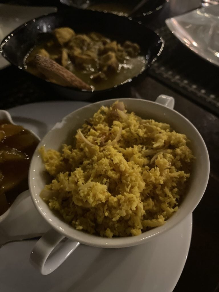 Auf dem Foto das von Restaurant „Secret Harbour“ in Bentota in Sri Lanka, probiert während unserer Reise im Oktober 2025, und in den folgenden Bildern die Sambols vom Buffet des Thaala, einem Strandhotel in Bentota, und der Snake Gourd Sambol sowie Moringa Sambol, zubereitet während des Ayurveda-Kochkurses.