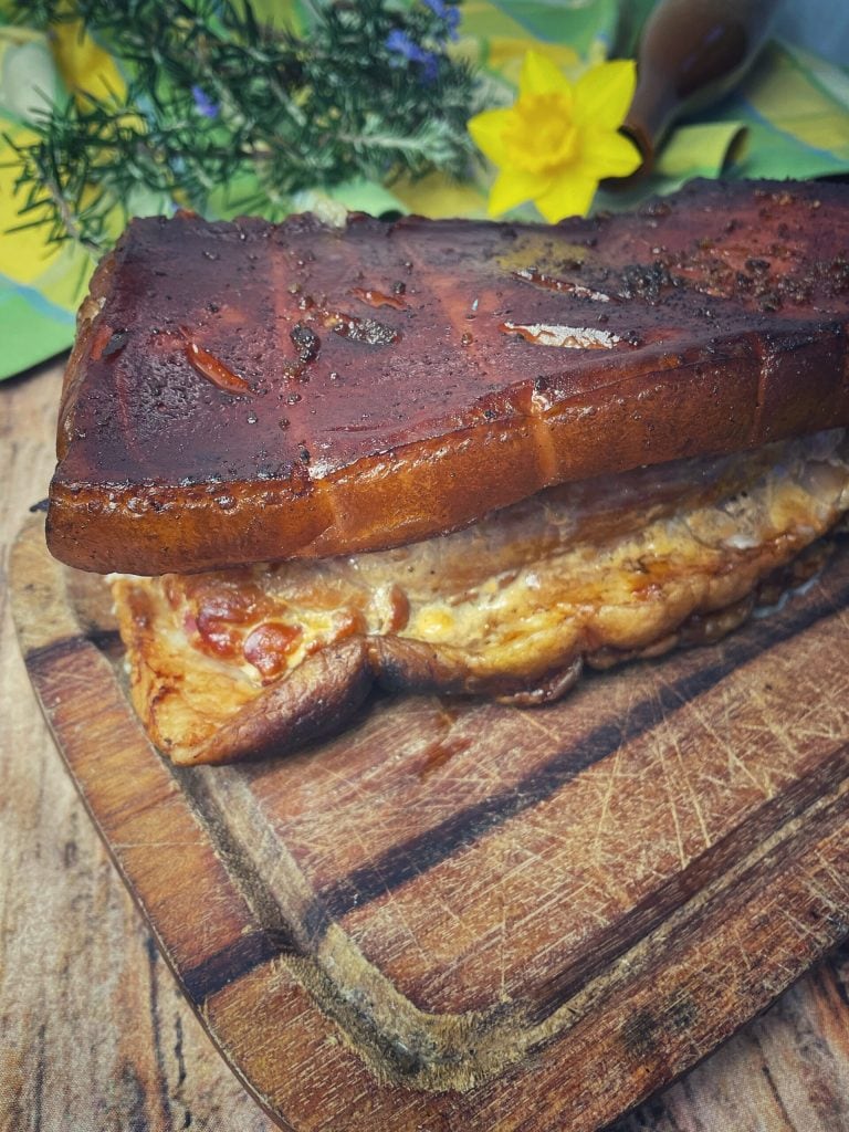 Die Porchetta ist ein traditionelles italienisches Gericht aus entbeintem Schweinefleisch, gewürzt und normalerweise am Spieß oder im Ofen gegart, diese Version ist Porchetta mit Kamado.