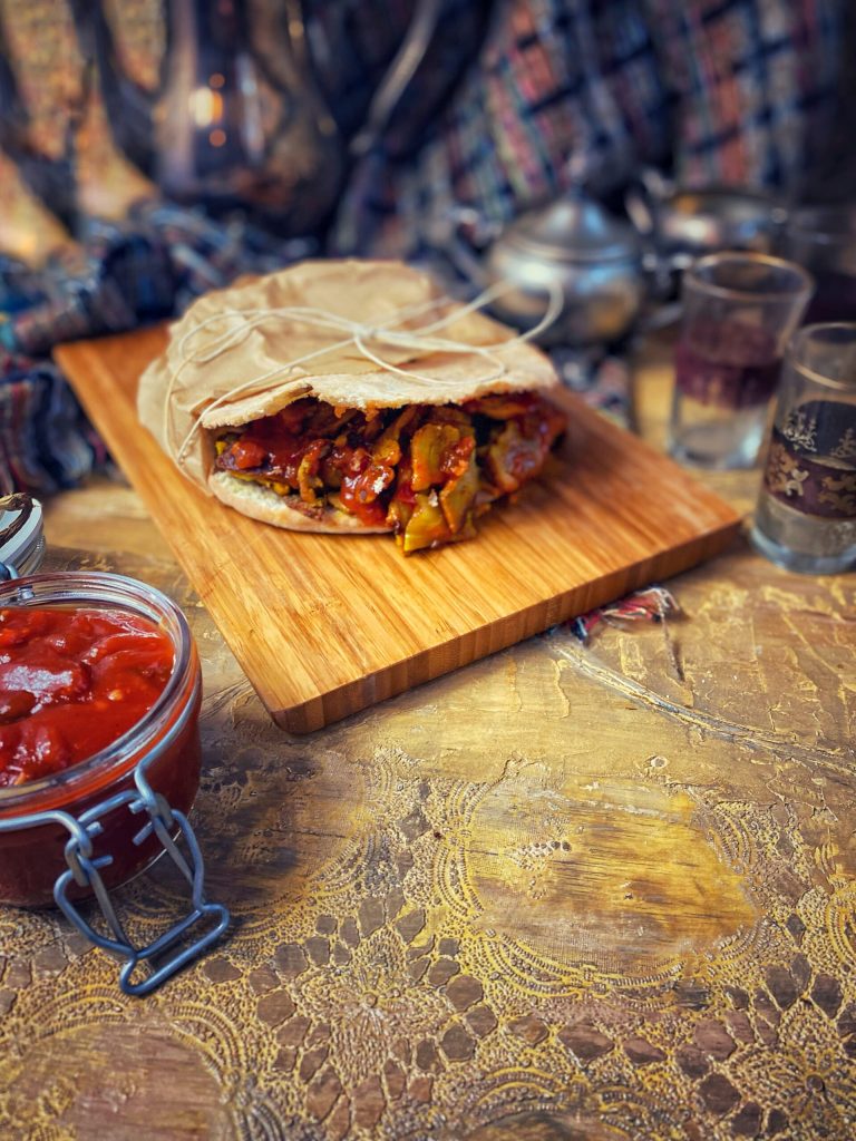Sie wird als streichfähige Sauce auf Brot oder als Sauce für Fisch und Fleisch serviert; ich habe sie verwendet, um das Shawarma zu verfeinern.